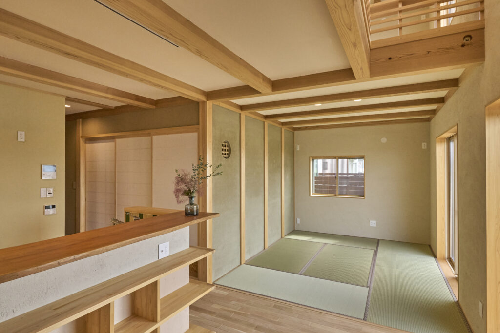 LDKに隣接した和室には思い入れのある古材を再利用