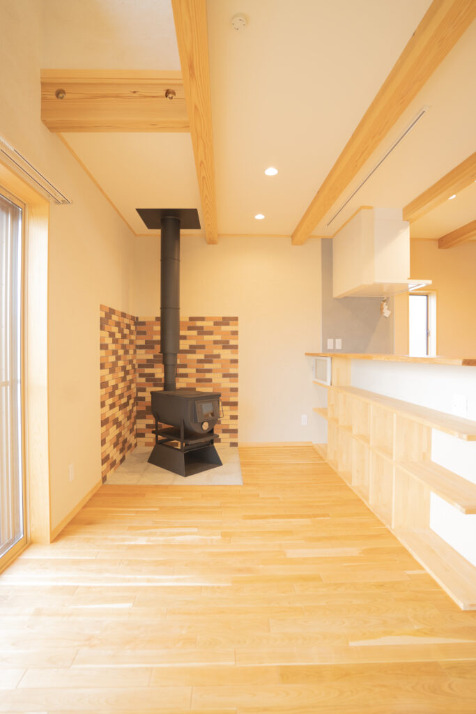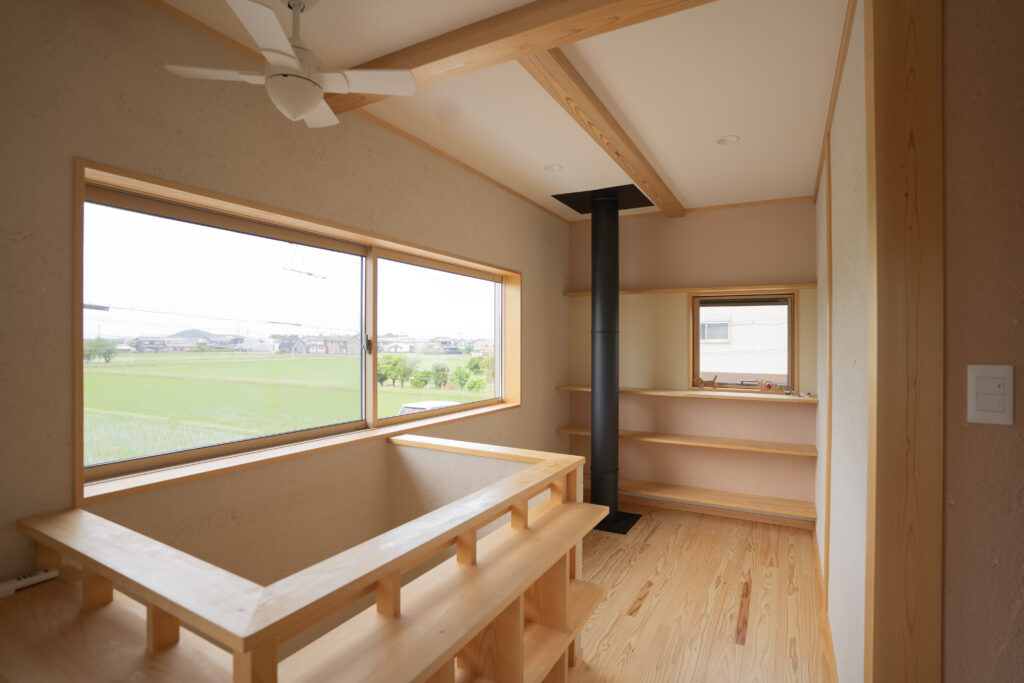 敷地の南面には田園が広がり、豊かな光が自然素材を